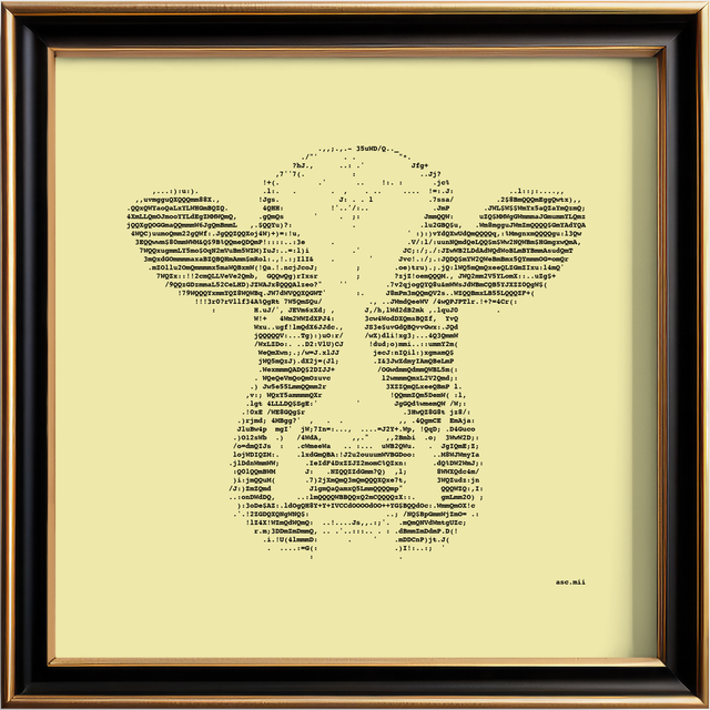 Edles Schreibmaschinenbild Kuh im Format 30 x 30 cm. Nylonfarbband auf feinem geripptem Papier in Elfenbein, 160 g/cm². Jedes Bild ist ein Einzelstück, das eigens auf der Schreibmaschine hergestellt wird.