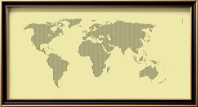 30 x 60 cm Schreibmaschinenbild Weltkarte in Schwarz auf Elfenbein
