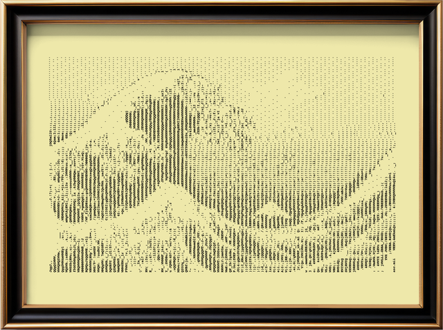 Edles Gemälde Hokusai im Format A3. Nylonfarbband auf feinem geripptem Papier in Elfenbein, 160 g/cm². Jedes Bild ist ein Einzelstück, das eigens auf der Schreibmaschine hergestellt wird.