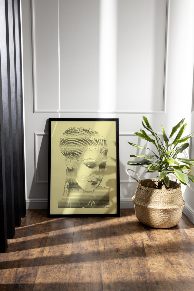 Edles Porträt von Brigitte Helm im Format A3. Nylonfarbband auf feinem geripptem Papier in Elfenbein, 160 g/cm². Jedes Bild ist ein Einzelstück, das eigens auf der Schreibmaschine hergestellt wird.