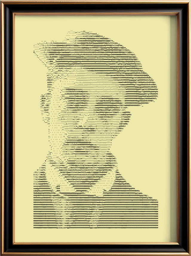 Edles Porträt von Buster Keaton im Format A3. Nylonfarbband auf feinem geripptem Papier in Elfenbein, 160 g/cm². Jedes Bild ist ein Einzelstück, das eigens auf der Schreibmaschine hergestellt wird.