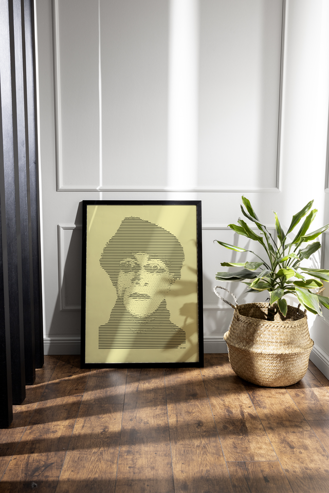 Edles Porträt von Cesare aus "Das Cabinet des Dr. Caligari" im Format A3. Nylonfarbband auf feinem geripptem Papier in Elfenbein, 160 g/cm². Jedes Bild ist ein Einzelstück, das eigens auf der Schreibmaschine hergestellt wird.