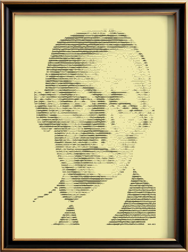 Edles Porträt von Hermann Hesse im Format A3. Nylonfarbband auf feinem geripptem Papier in Elfenbein, 160 g/cm². Jedes Bild ist ein Einzelstück, das eigens auf der Schreibmaschine hergestellt wird.