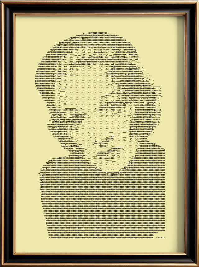 Edles Porträt von Marlene Dietrich im Format A3. Nylonfarbband auf feinem geripptem Papier in Elfenbein, 160 g/cm². Jedes Bild ist ein Einzelstück, das eigens auf der Schreibmaschine hergestellt wird.