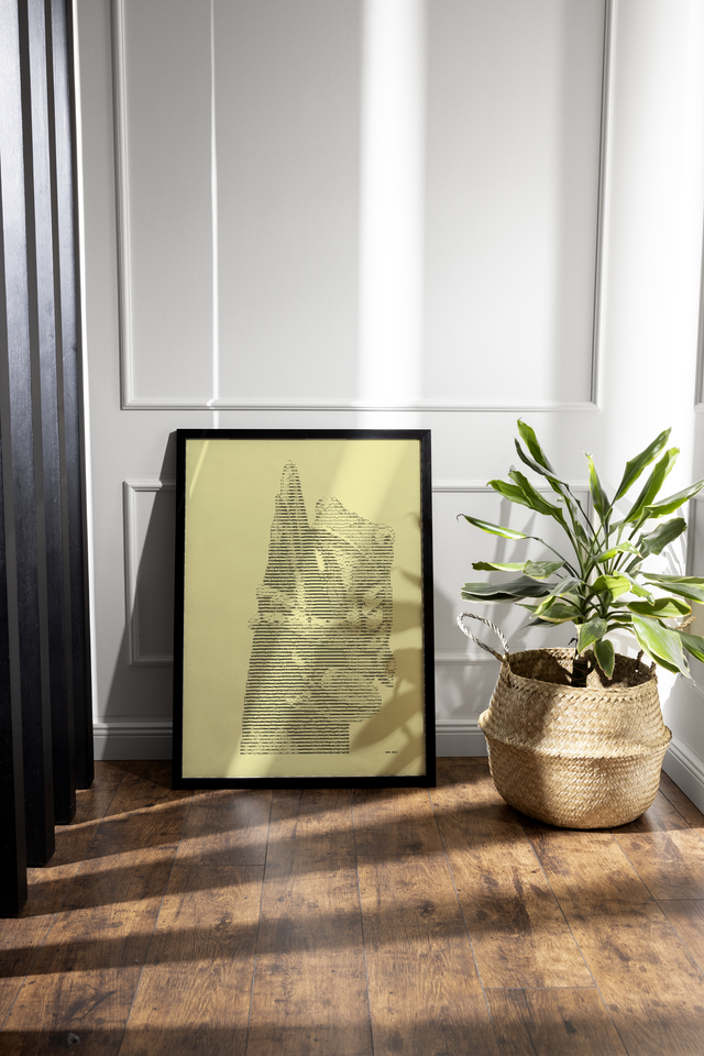 Edles Schreibmaschinenbild Frosch im Format A3. Nylonfarbband auf feinem geripptem Papier in Elfenbein, 160 g/cm². Jedes Bild ist ein Einzelstück, das eigens auf der Schreibmaschine hergestellt wird.