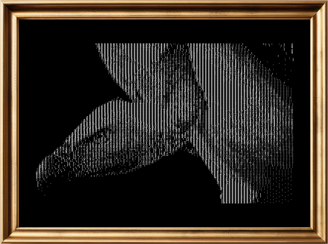 Edles Schreibmaschinenbild Geier im Format A3. Weißer Schreibmaschinendruck auf feinem, schwarzem Künstlerpapier, 160 g/cm². Jedes Bild ist ein Einzelstück, das eigens auf der Schreibmaschine hergestellt wird.