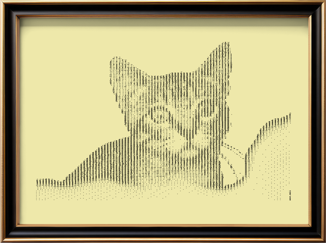 Edles Schreibmaschinenbild Katze im Format A3. Nylonfarbband auf feinem geripptem Papier in Elfenbein, 160 g/cm². Jedes Bild ist ein Einzelstück, das eigens auf der Schreibmaschine hergestellt wird.