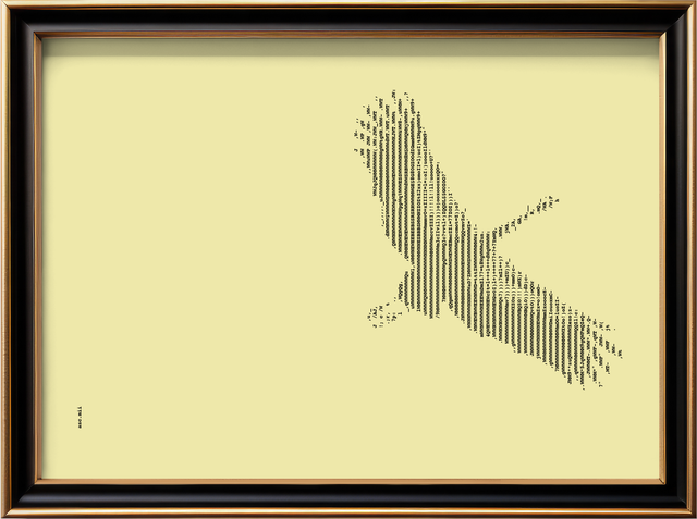 A3 Schreibmaschinenbild Kranich in Schwarz auf Elfenbein