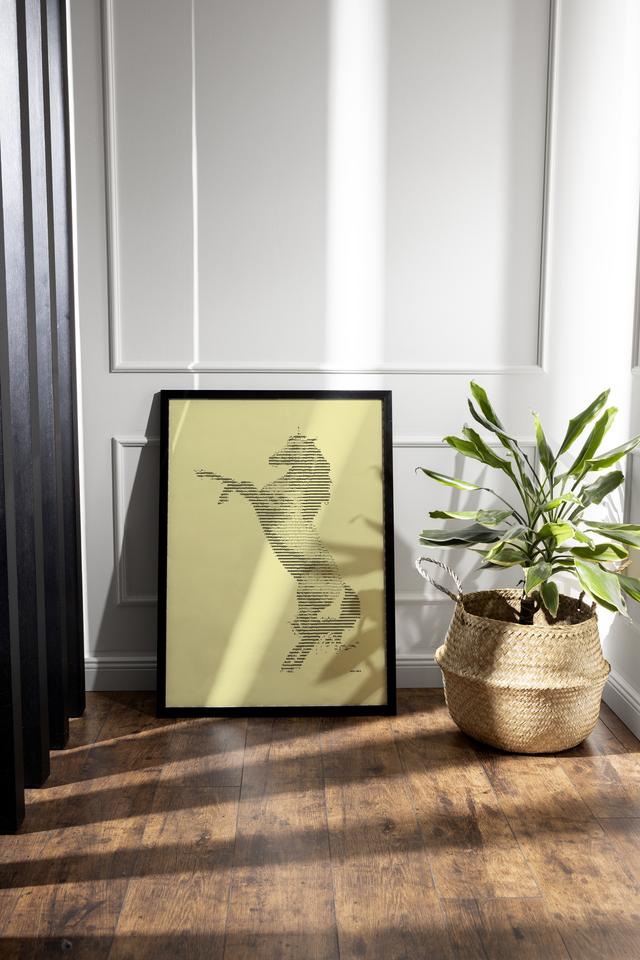 Edles Schreibmaschinenbild Pferd im Format A3. Nylonfarbband auf feinem geripptem Papier in Elfenbein, 160 g/cm². Jedes Bild ist ein Einzelstück, das eigens auf der Schreibmaschine hergestellt wird.