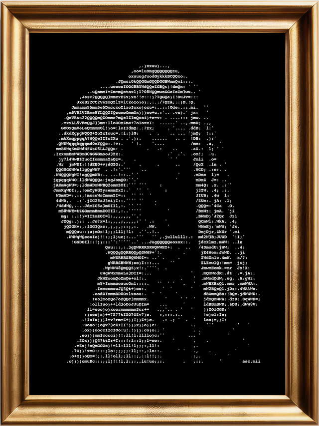 Edles Gemälde Meisje met de Parel im Format A4. Weißer Schreibmaschinendruck auf feinem, schwarzem Künstlerpapier, 160 g/cm². Jedes Bild ist ein Einzelstück, das eigens auf der Schreibmaschine hergestellt wird.