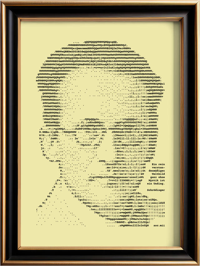 Edles Porträt von Erwin Schrödinger mit Zitat im Format A4. Nylonfarbband auf feinem geripptem Papier in Elfenbein, 160 g/cm². Jedes Bild ist ein Einzelstück, das eigens auf der Schreibmaschine hergestellt wird.