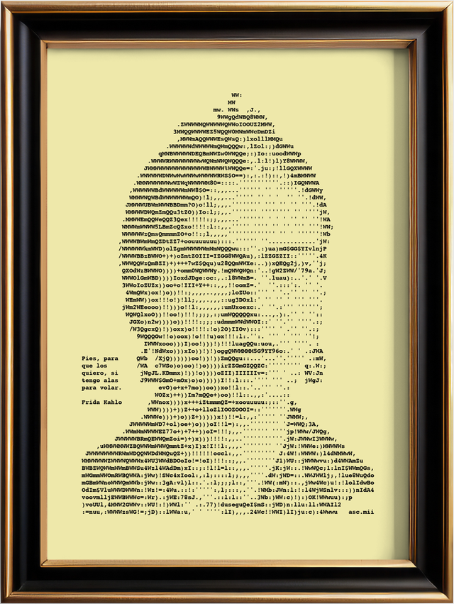 Edles Porträt von Frida Kahlo mit Zitat im Format A4. Nylonfarbband auf feinem geripptem Papier in Elfenbein, 160 g/cm². Jedes Bild ist ein Einzelstück, das eigens auf der Schreibmaschine hergestellt wird.