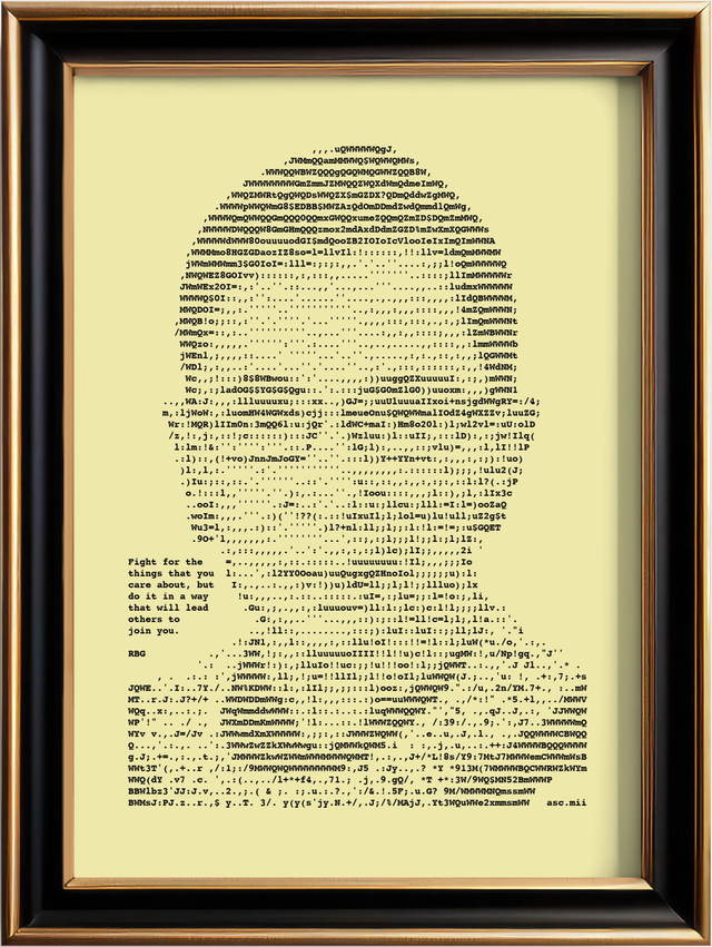 Edles Porträt von Ruth Bader-Ginsburg mit Zitat im Format A4. Nylonfarbband auf feinem geripptem Papier in Elfenbein, 160 g/cm². Jedes Bild ist ein Einzelstück, das eigens auf der Schreibmaschine hergestellt wird.